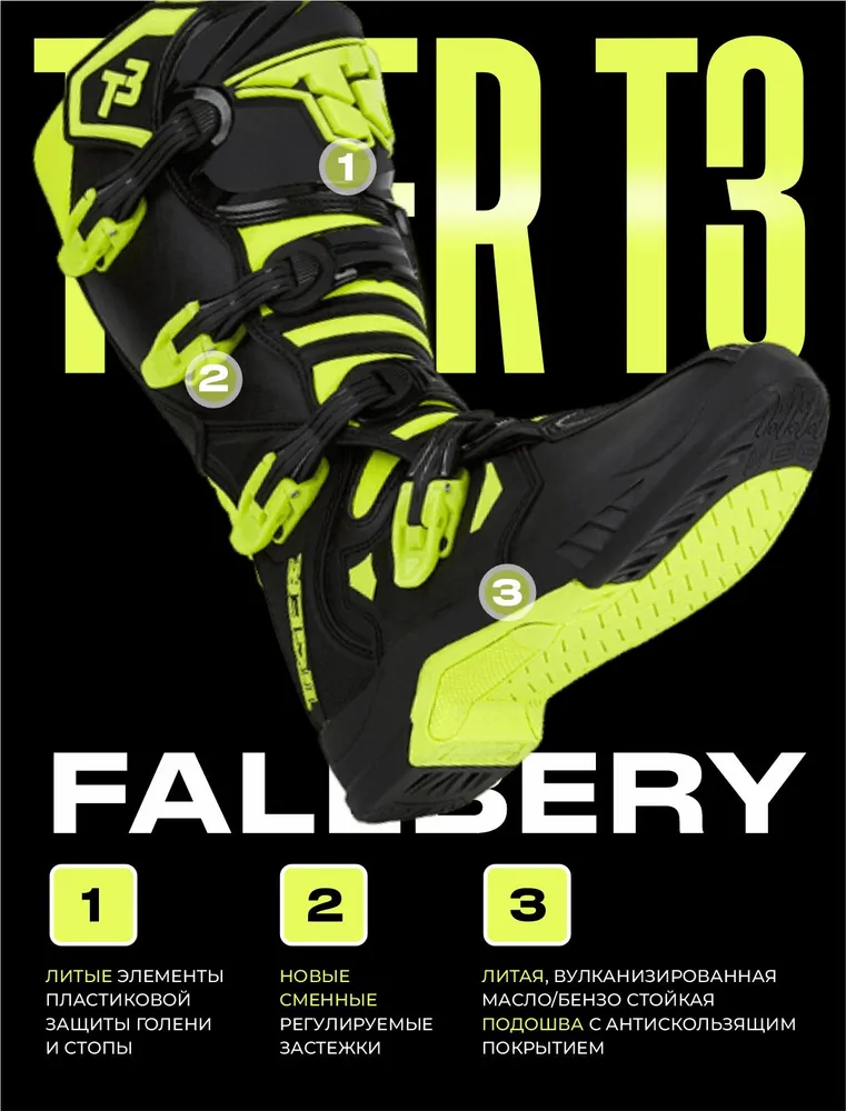 Готов к покорению самого жесткого бездорожья? Профессиональные мотоботы FALLBERY TIGER - T3 созданы для райдеров, которые не выбирают легких путей. Это сочетание агрессивного дизайна, бескомпромиссной защиты и комфорта, который сохраняется даже после целого дня в седле.