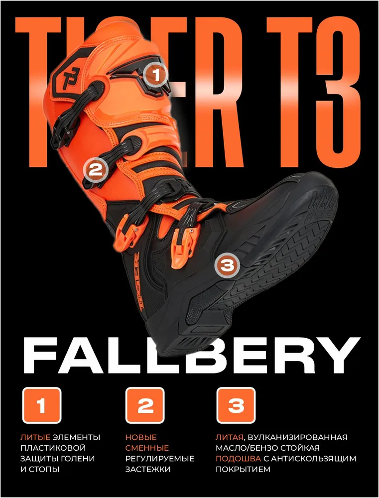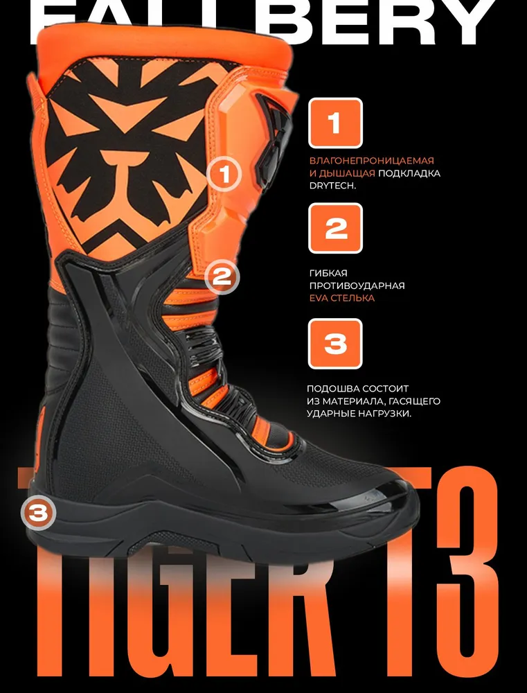 Готов к покорению самого жесткого бездорожья? Профессиональные мотоботы FALLBERY TIGER - T3 созданы для райдеров, которые не выбирают легких путей. Это сочетание агрессивного дизайна, бескомпромиссной защиты и комфорта, который сохраняется даже после целого дня в седле.