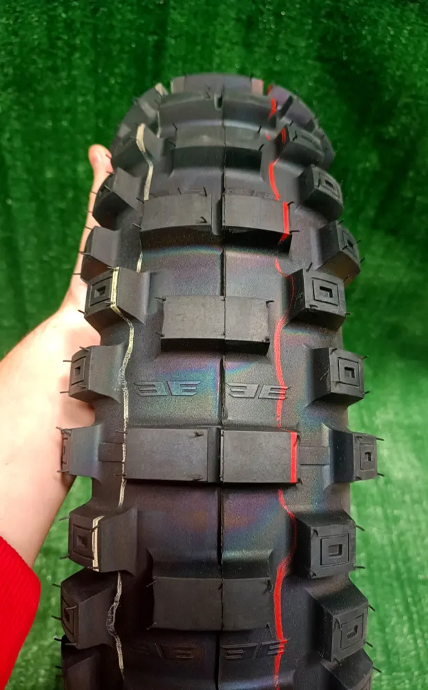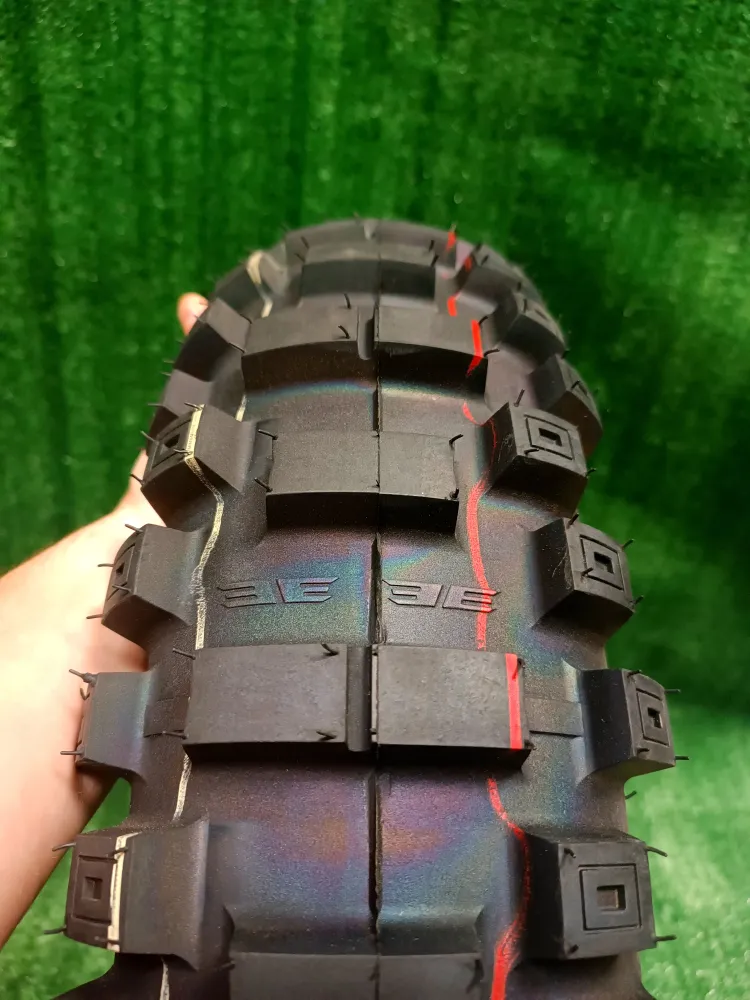 Покрышка бери и EBOSH 140/80-18 (HARD) (Terra Xtreme Enduro FALLBERY) - относится к классу шин для кроссовых мотоциклов и эндуро мотоциклов, обладает прочным и износостойким протектором. Подходит для использования на мягком, средне-мягком грунтах, особенно хорошо демонстрируя себя в летний период. Агрессивный рисунок протектора и широкое расстояние между соседними элементами позволяет покрышке эффективно самоочищаться. Блоки размещены по всей площади шины для более стабильного пятна контакта с трассой при разных режимах движения. Колёса байка не скользят на мягкой трассе, так как протектор с острыми кромками отлично «вгрызается» в покрытие. Шины хорошо демонстрируют себя при дожде, ведь протекторные элементы имеют специальные дренажные канавки, посредством которых удаляется вода. Использование современных технологий и материалов в производстве гарантирует долговечность и устойчивость покрышки к износу.
