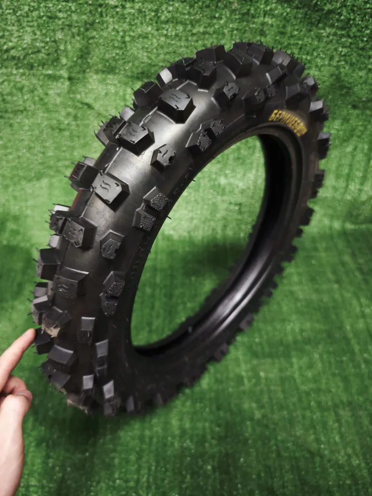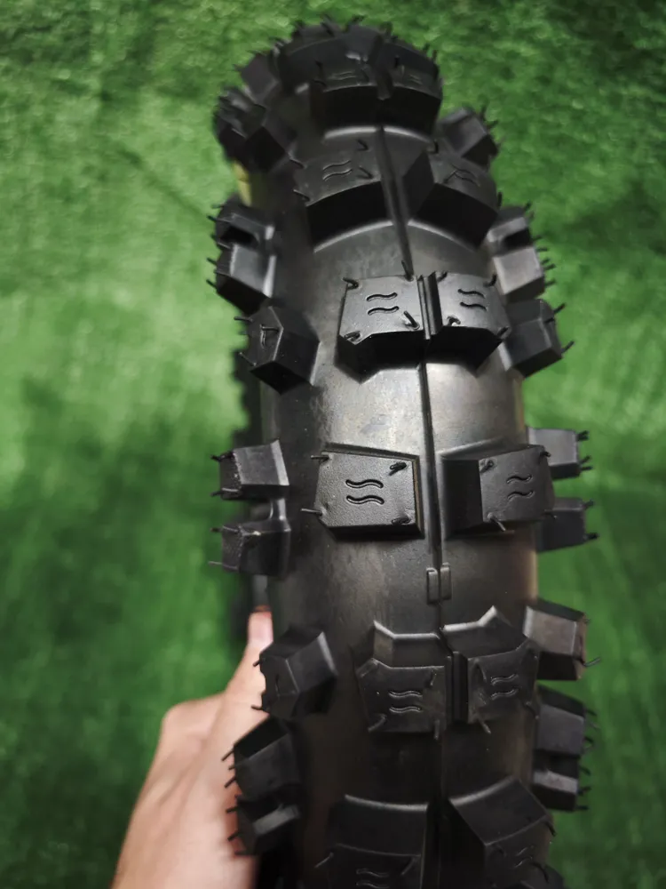 Обновленная копия, относится к классу шин для кроссовых мотоциклов и обладает прочным и износостойким протектором. Подходит для использования на твердых грунтах, особенно хорошо демонстрируя себя в летний период. Агрессивный рисунок протектора и широкое расстояние между соседними элементами позволяет покрышке эффективно самоочищаться. Блоки размещены по всей площади шины для более стабильного пятна контакта с трассой при разных режимах движения. Колёса байка не скользят на мягкой трассе, так как протектор с острыми кромками отлично «вгрызается» в покрытие. Шины хорошо демонстрируют себя при дожде, ведь протекторные элементы имеют специальные дренажные канавки, посредством которых удаляется вода. Использование современных технологий и материалов в производстве гарантирует долговечность и устойчивость покрышки к износу.