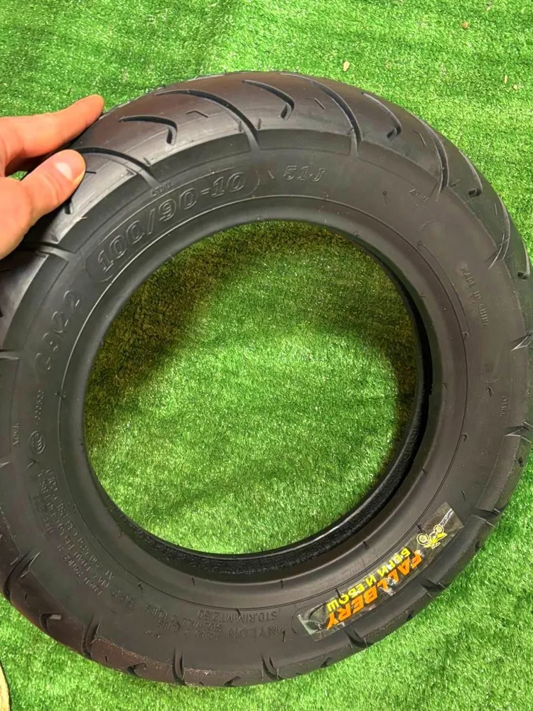 FALLBERY Roadtec Scooter 100/90-10 61J TL REINF — мотоциклетные шины для всех типов скутеров с колесом 10–16 дюймов от компании Metzeler. Резина получила новый состав компаунда с повышенным содержанием силики и усовершенствованный рисунок протектора, что дает дополнительную устойчивость на мокром покрытии независимо от температур.