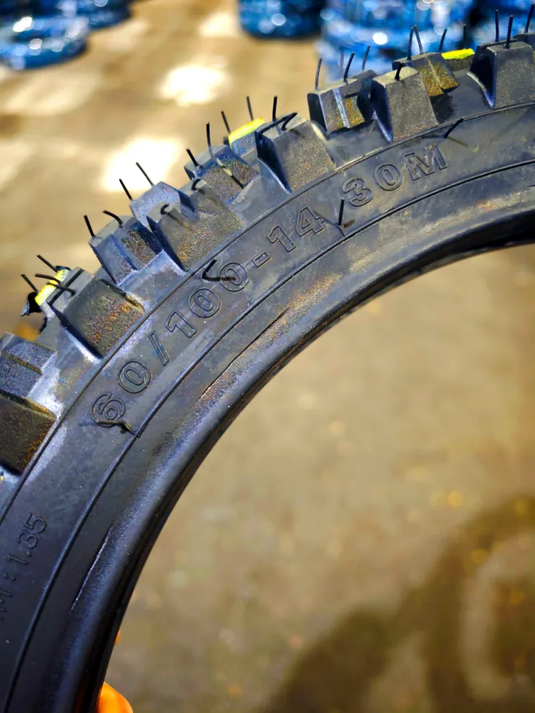 FALLBERY 60/100-14 — мотошина, разработанная для эксплуатации вне дорог общего пользования, таких как гоночные трассы, бездорожье или для специальных соревнований.. Подходит как для переднего, так и для заднего колеса лёгких мотоциклов, скутеров и мини-байков, где важны манёвренность и сцепление на сухом покрытии.