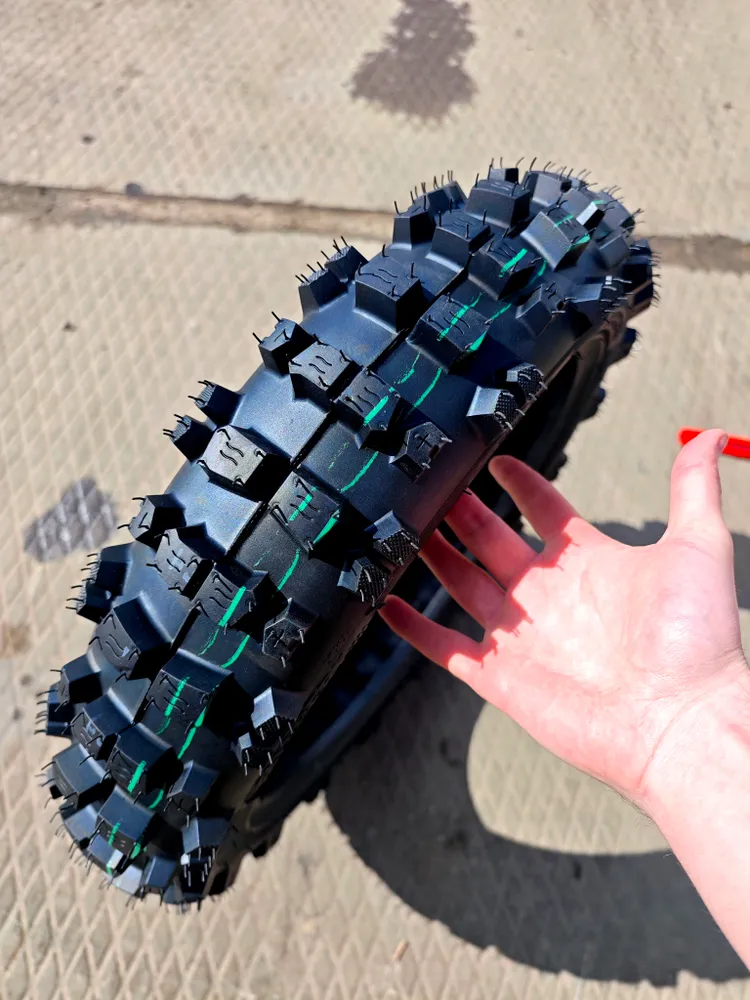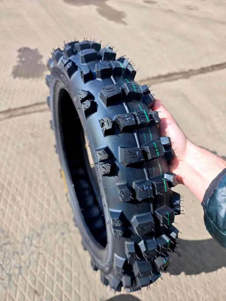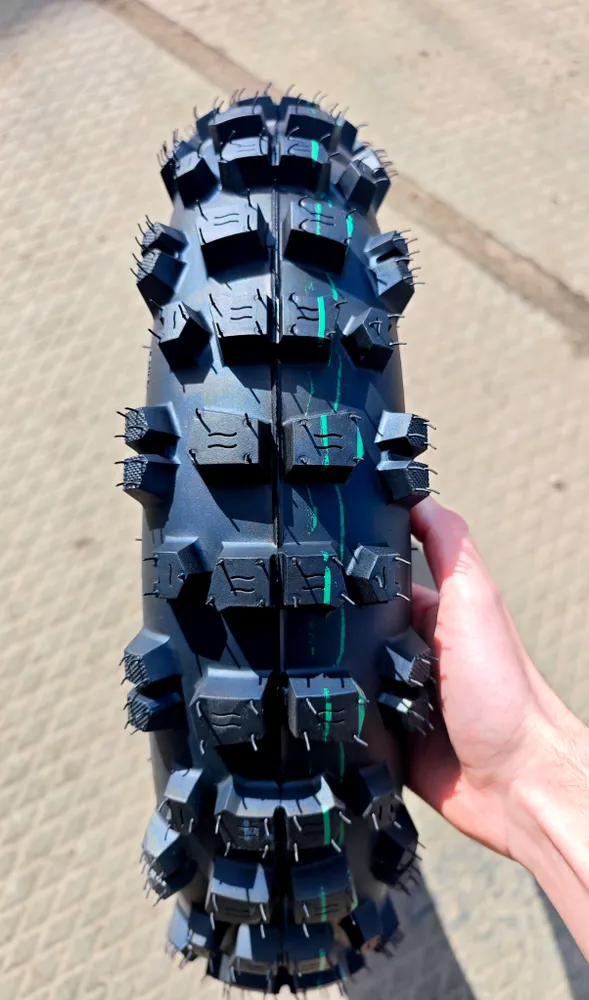 Обновленная копия, относится к классу шин для кроссовых мотоциклов и обладает прочным и износостойким протектором. Подходит для использования на твердых грунтах, особенно хорошо демонстрируя себя в летний период. Агрессивный рисунок протектора и широкое расстояние между соседними элементами позволяет покрышке эффективно самоочищаться. Блоки размещены по всей площади шины для более стабильного пятна контакта с трассой при разных режимах движения. Колёса байка не скользят на мягкой трассе, так как протектор с острыми кромками отлично «вгрызается» в покрытие. Шины хорошо демонстрируют себя при дожде, ведь протекторные элементы имеют специальные дренажные канавки, посредством которых удаляется вода. Использование современных технологий и материалов в производстве гарантирует долговечность и устойчивость покрышки к износу.